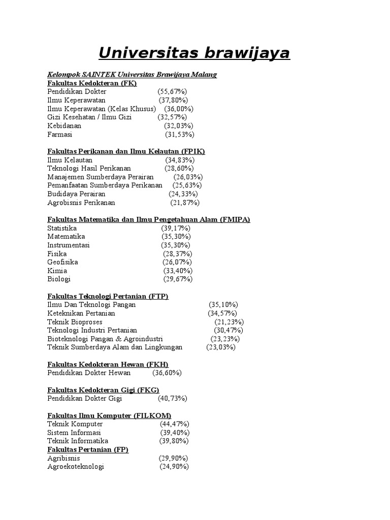 Melansir data rencanamu.id, berikut skor utbk yang diterima di prodi kedokteran sejumlah ptn pada sbmptn 2019. Passing grade ub 2019 menjadi pembicaraan tersendiri bagi para calon mahasiswa baru yang akan melanjutkan kuliah ke perguruan tinggi. Agustus 7th, 2021 pengumuman hasil verifikasi berkas pemeriksaan tes kesehatan dan tes psikologi calon mahasiswa fk, fkg, dan fkh pada jalur seleksi mandiri gelombang ii 2021; 2.6.2 passing grade 2021 ugm, ips; Soal yang harus dijawab disini adalah nilai kasar saja, artinya saya ambil yang paling kecil. Passing grade fakultas kedokteran ub mencapai angka 55,67%. Passing grade undip 2020/2021 (universitas dipenogoro) passing grade undip digunakan untuk melihat presentasi nilai sebagai referensi untuk lolos di program studi tertentu yang ada di undip. Universitas brawijaya fakultas kedokteran universitas brawijaya merupakan fakultas kedokteran terbaik ketujuh di indonesia. 2.7.1 passing grade 2021 ub, ipa: Fakultas kedokteran memang sering menjadi fakultas terfavorit di universitas, terutama di universitas brawijaya. Fakultas kedokteran hewan (fkh ub) fakultas kedokteran (fk ub) fakultas kedokteran gigi (fkg ub) soshum (sosial humaniora). Soal bahasa indonesia kelas 4; Pendidikan dokter 57,64% teknik komputer 44,50% teknik kimia 44,50% teknik elektro 43,08% ilmu komputer 44,87% teknik informatika 45,78% pendidikan kedokteran gigi 43,72% sistem informasi 39,39% teknik industri 39,31% teknik sipil 38,44% statistik 38,16%